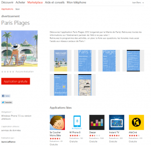Voici quelques informations et captures d’écran des deux versions de l’application Paris Plages sur Windows Phone :
